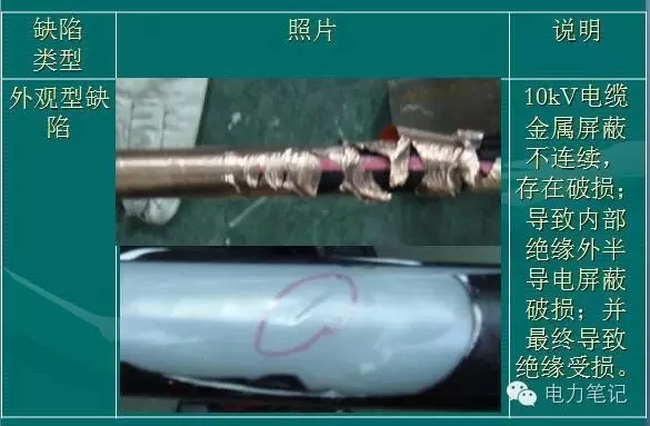 在電纜接頭安裝過程中要剝除外半導(dǎo)電屏蔽,如果在關(guān)鍵部位造成損傷,例如刀痕,也會形成內(nèi)部爬閃放電通道。