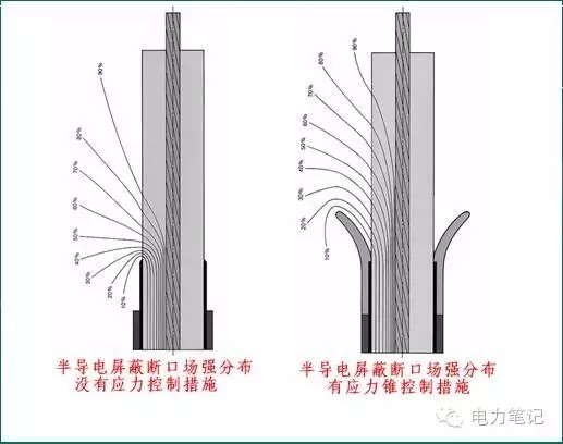在進行電纜終端和對接頭制作中都有處理半導(dǎo)體屏蔽層,這是接頭質(zhì)量的關(guān)鍵。此處是場強突變的部位,如果處理工藝水平不高,投入運行后對絕緣造成損傷,嚴重的情況在竣工試驗中就會發(fā)生擊穿。