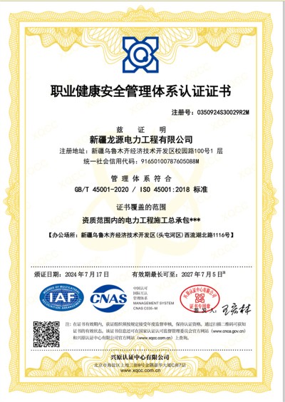 職業(yè)健康安全管理體系認(rèn)證證書